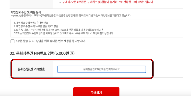 18자리 PIN 번호를 입력하여 구매하는 방식이고,