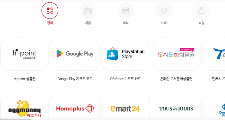 - 카페 상품권(메가커피, 이디야커피, 공차, 매머드커피)