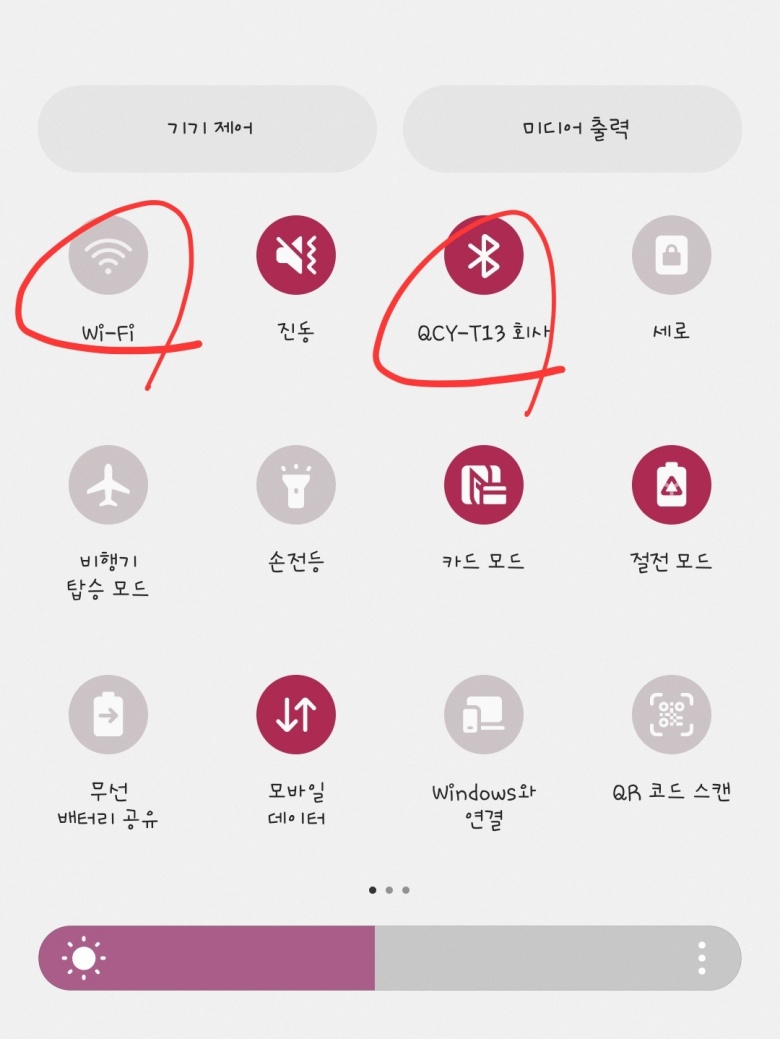 화면을 아래로 두 번 드래그하면 나타나는 설정창에서